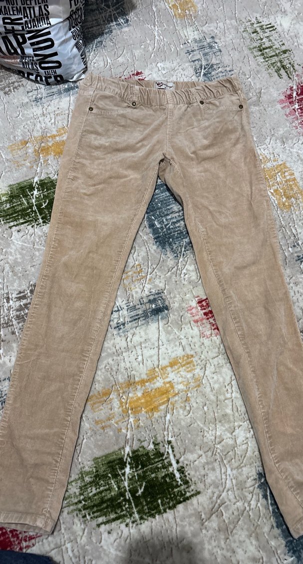 Bej Düğmeli Kadın Denim Pantolon kadife