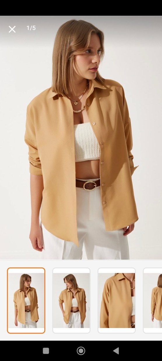 Bej Düğmeli Kadın Gömlek