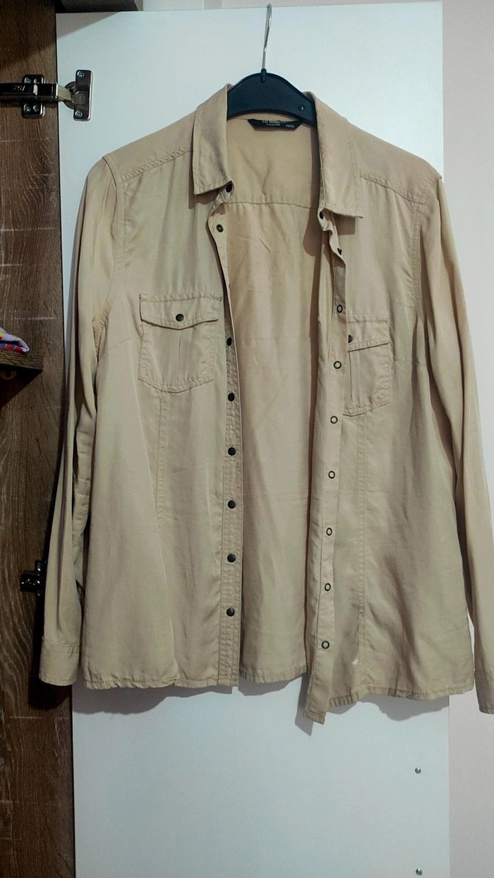 Bej Düğmeli Kadın Gömlek