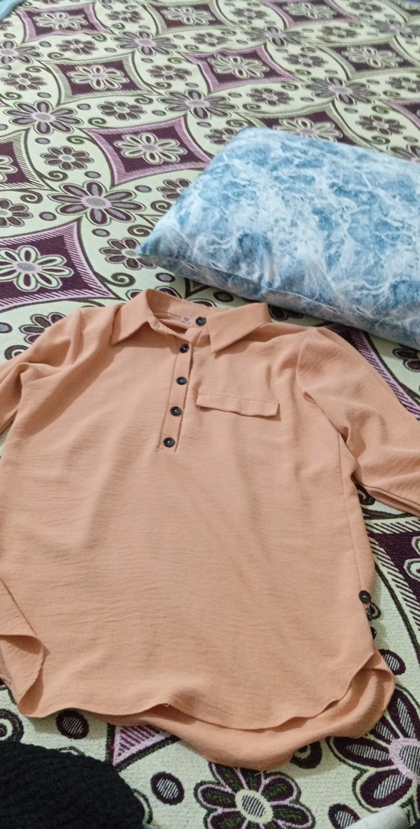 Bej renkli, uzun kollu, düğmeli ve yakalı kadın gömleği. Rahat kesim ve yumuşak sentetik kumaştan, günlük sokak stili için uygun. ✨