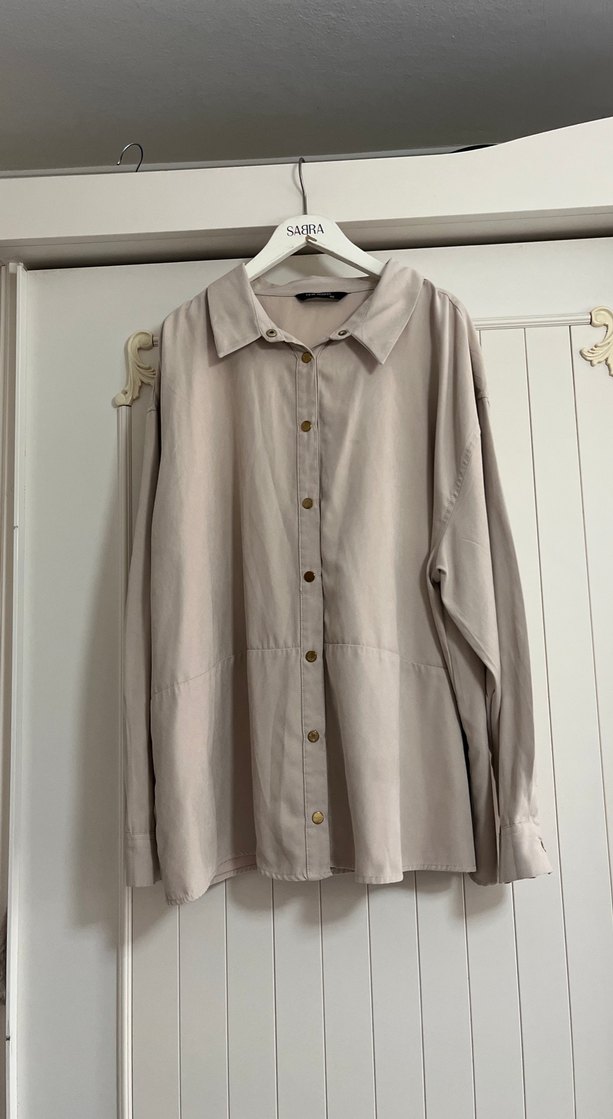 Bej renkli, uzun kollu ve yakalı düğmeli kadın gömleği. Rahat ve salaş kesim, günlük kullanıma uygundur. Boyu:70 İki kol arası:64 cm’dir