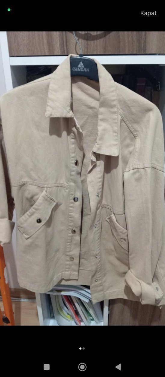 Uzun kollu, bej keten kadın ceket, düğmeli ve yaka detayıyla rahat ve salaş bir görünüm sunar. Günlük kullanıma uygundur.