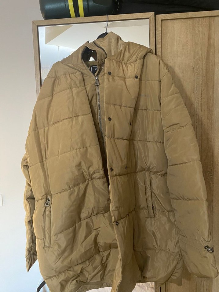Bej renginde, düğmeli ve uzun kollu kadın kışlık ceket. Rahat kesimi, kruvaze yakası ve midi uzunluğu ile günlük kullanıma uygundur. ❄️
