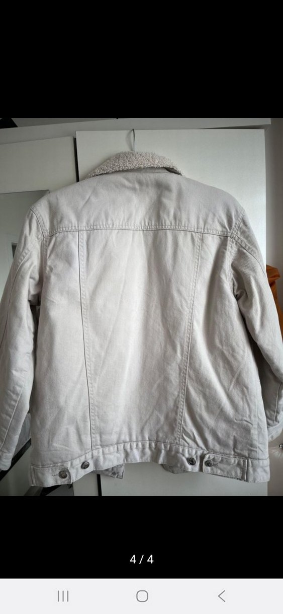 bejrenkli, düğmeli, uzun kollu, keten kumaştan yapılmış, normal boyda, bol kesim kadın denim cekettir. Günlük rahat kullanım için uygundur.