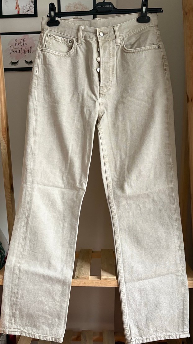 Bej Düğmeli Kadın Kot Pantolon