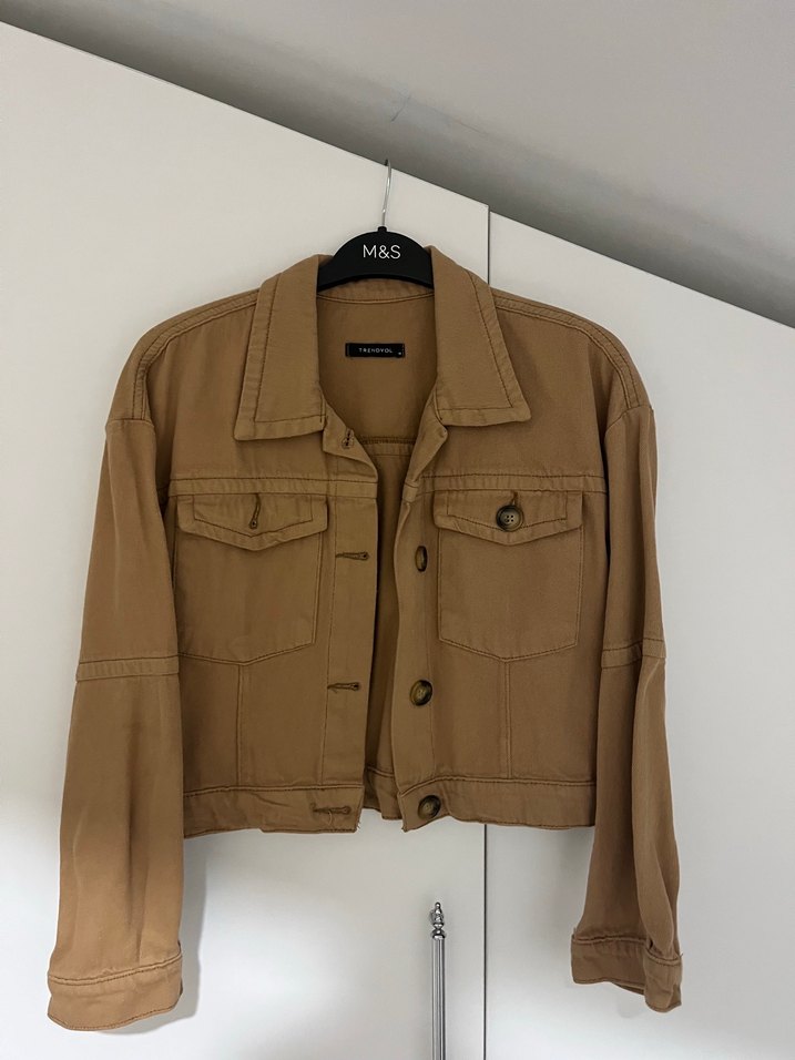 Bej renkte, düğmeli, keten kumaştan yapılmış, normal uzunlukta kadın ceket. Notch yaka ve uzun kolludur, rahat kesimiyle günlük kullanıma uygundur.