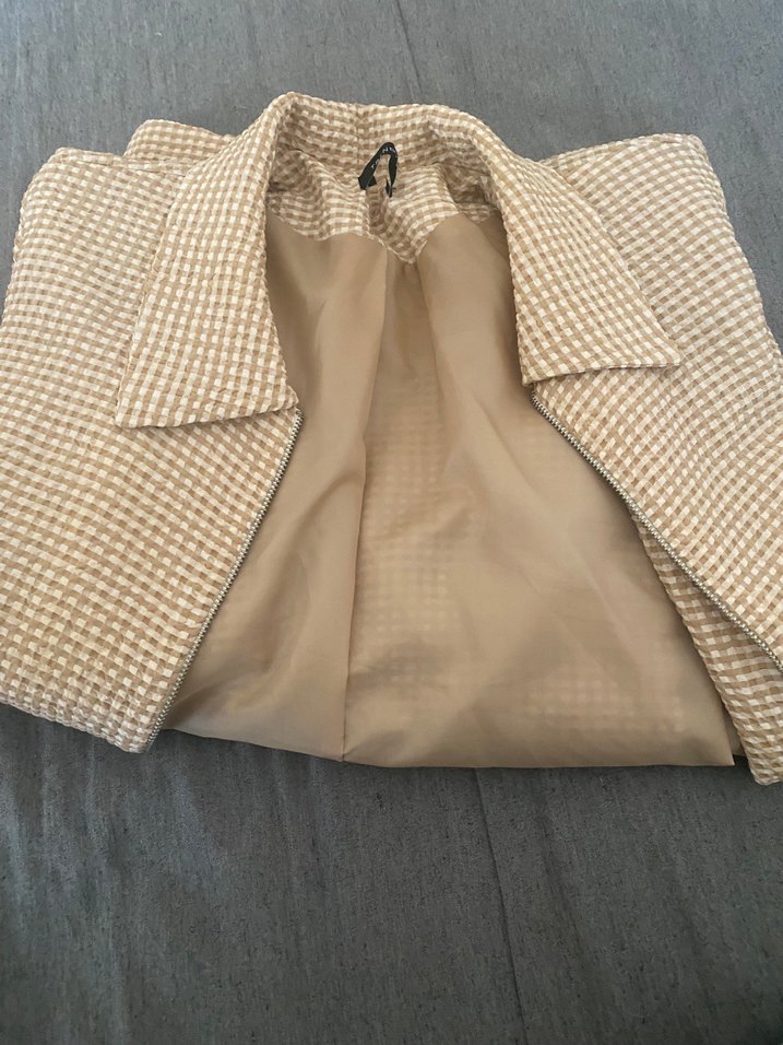 Bej renkte, düğmeli, normal kesim ve uzun kollu kadın midi kaban. Notch yaka detayına sahip, günlük kullanıma uygun parlak dokulu. Fermuarlı .