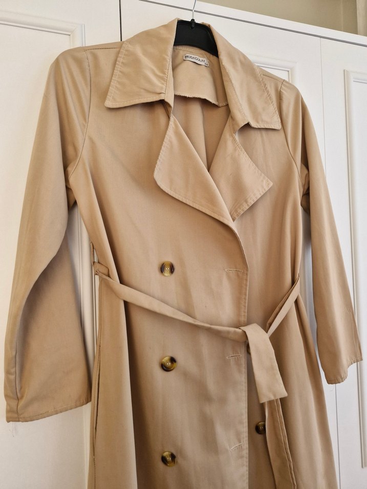 Bej Düğmeli Kadın Trençkot