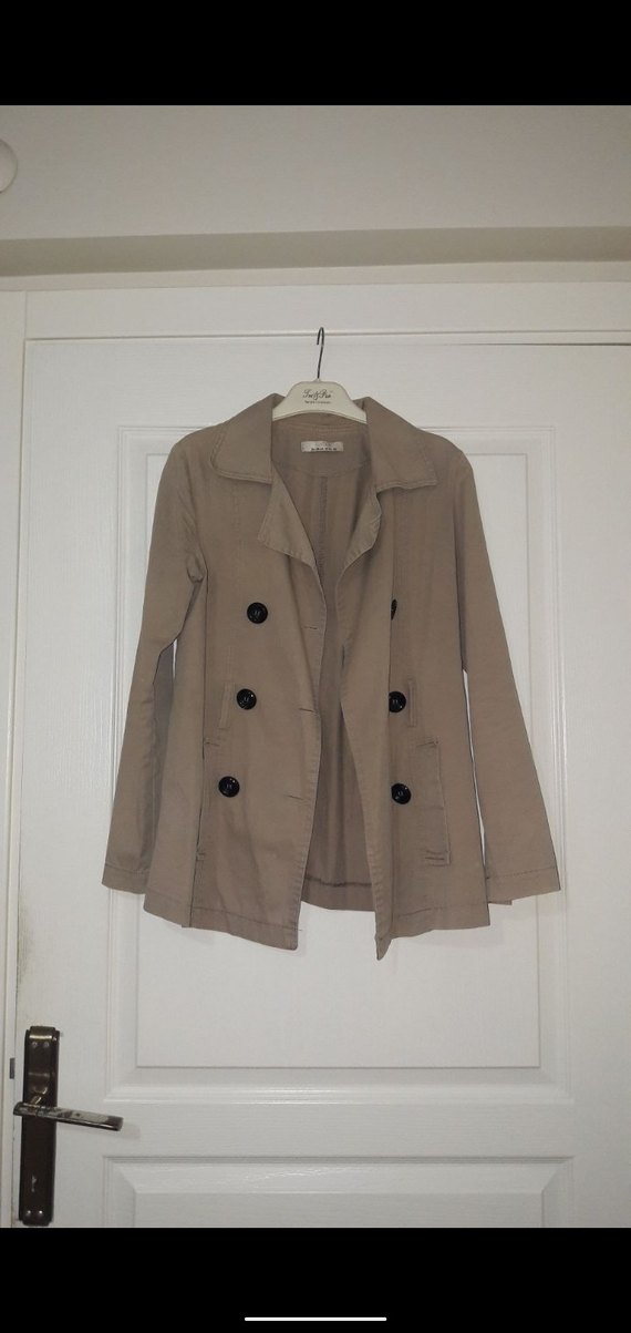 Bej renkli, düğmeli, keten kumaştan yapılmış trençkot. Notlu yaka, uzun kollu ve midi boydadır. Günlük kullanıma uygun, sade ve rahat kesim.