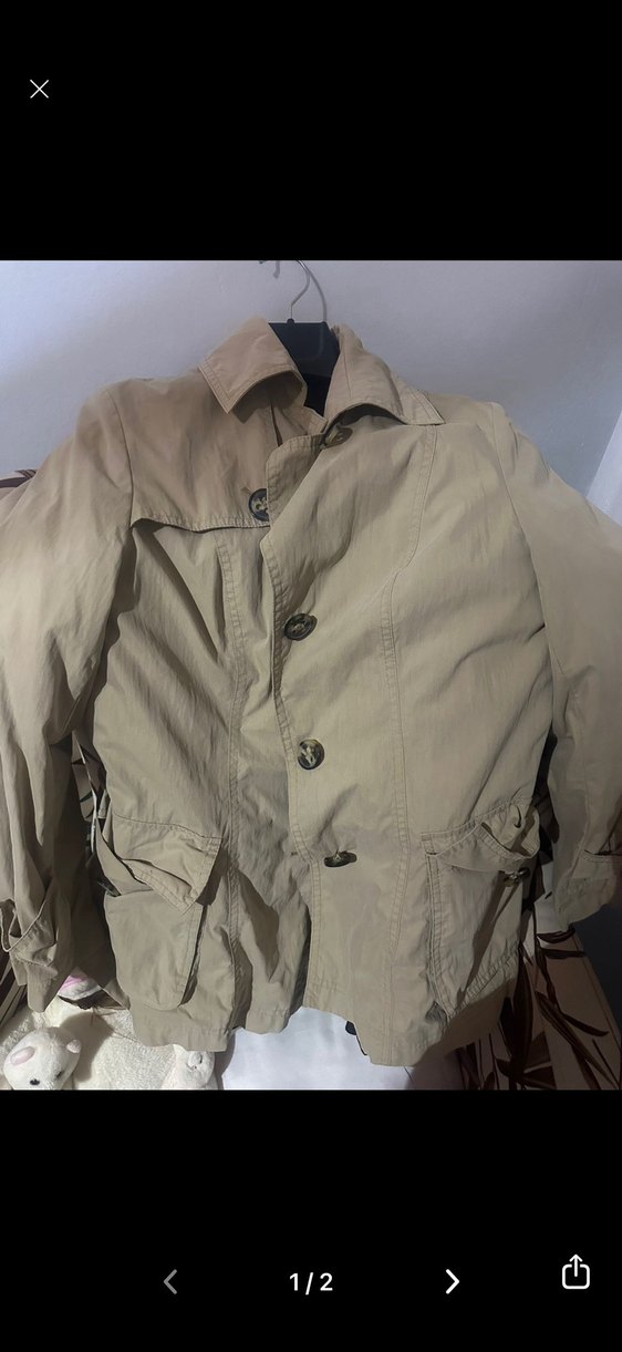 Bej renkli, düğmeli, keten kumaştan yapılmış erkek trençkot. Normal boyda, uzun kollu ve düzenli kesime sahiptir. Günlük kullanıma uygundur. ️