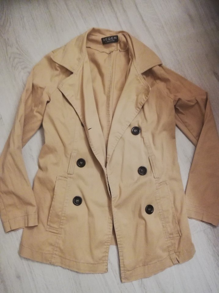 Bej Düğmeli Kadın Trençkot