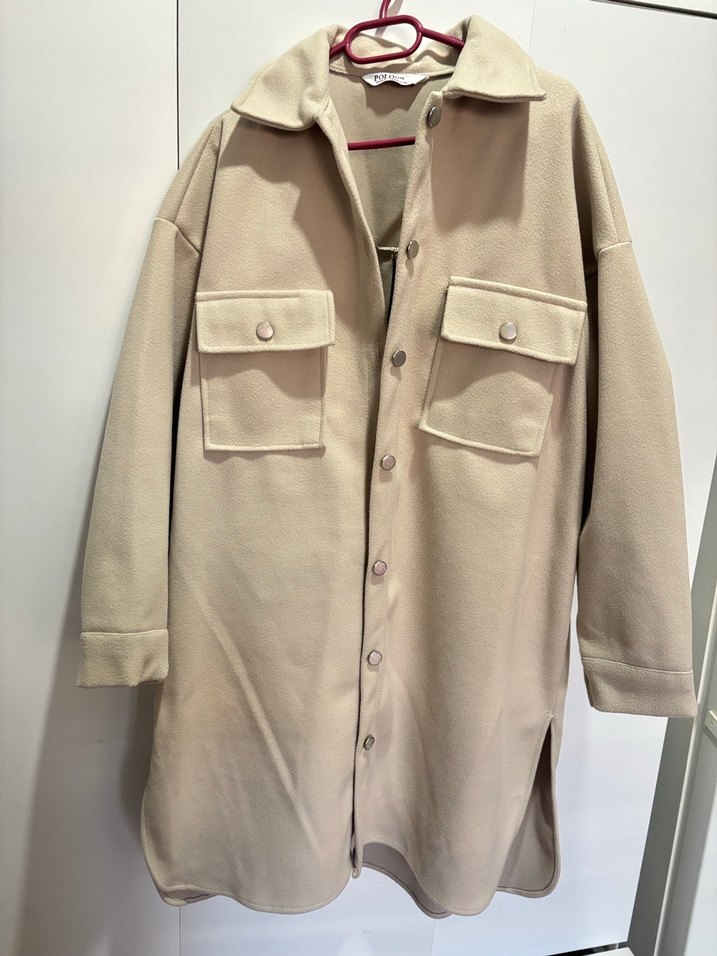 Bej renkte, düğmeli uzun kaban. Geniş kesim, uzun kollu ve cepli. Yumuşak, sıcak kumaştan, günlük rahat kullanım için uygundur. İster önü açık ister önü kapalı kullanılabilir Defosu yoktur 2-3 kez anca giyilmiştir 40-42 beden uyumludur