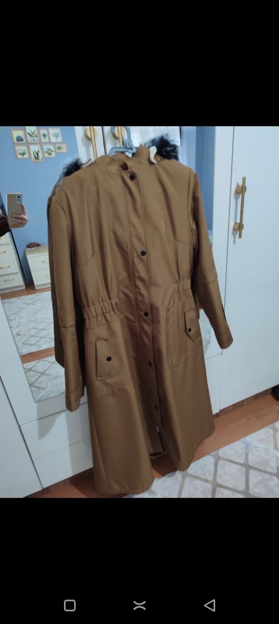 Bej Düğmeli Kadın Uzun Mont