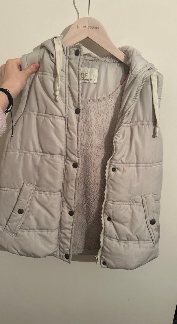 Bej renkli, düğmeli ve kolsuz kadın yeleği. İç kısmı yumuşak ve sıcak tutan kumaşla kaplıdır. Notlu yaka ve dar kesimlidir.