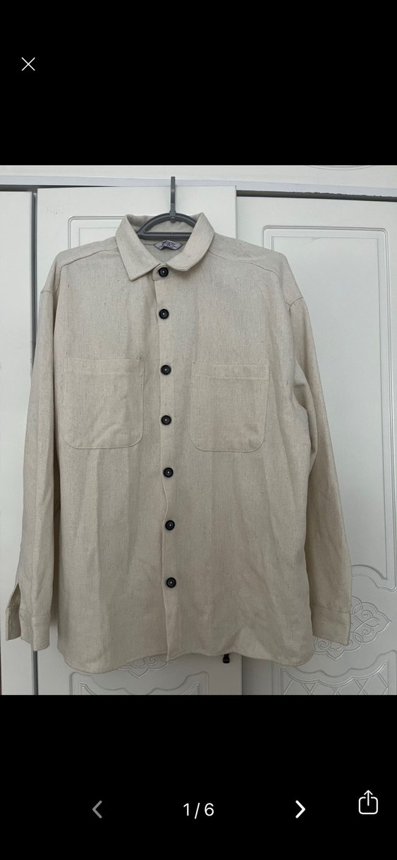 Bej renkli keten kumaştan, düğmeli ve uzun kollu gömleği. Notlu yaka ve regular kesim özellikleriyle günlük sokak stiline uygundur.
