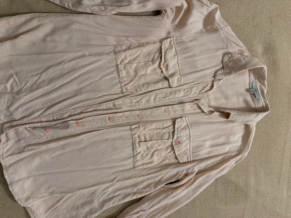 Bej pudra pembesi arası bir renk keten kumaştan Markası Mavi kalıbı S beden için de uygun dar kesim değil