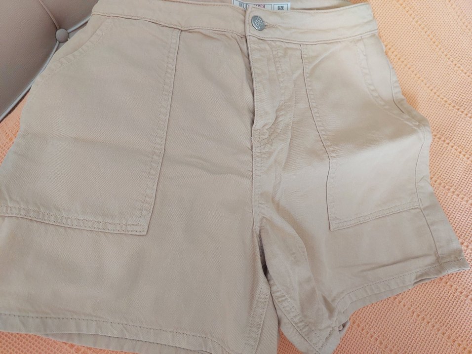 Bej keten kumaştan şort