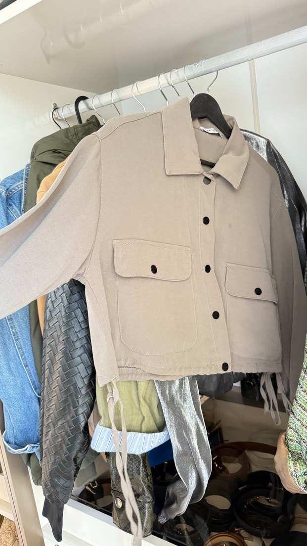 Bej Düğmeli Keten Salaş Kadın Gömlek ceket