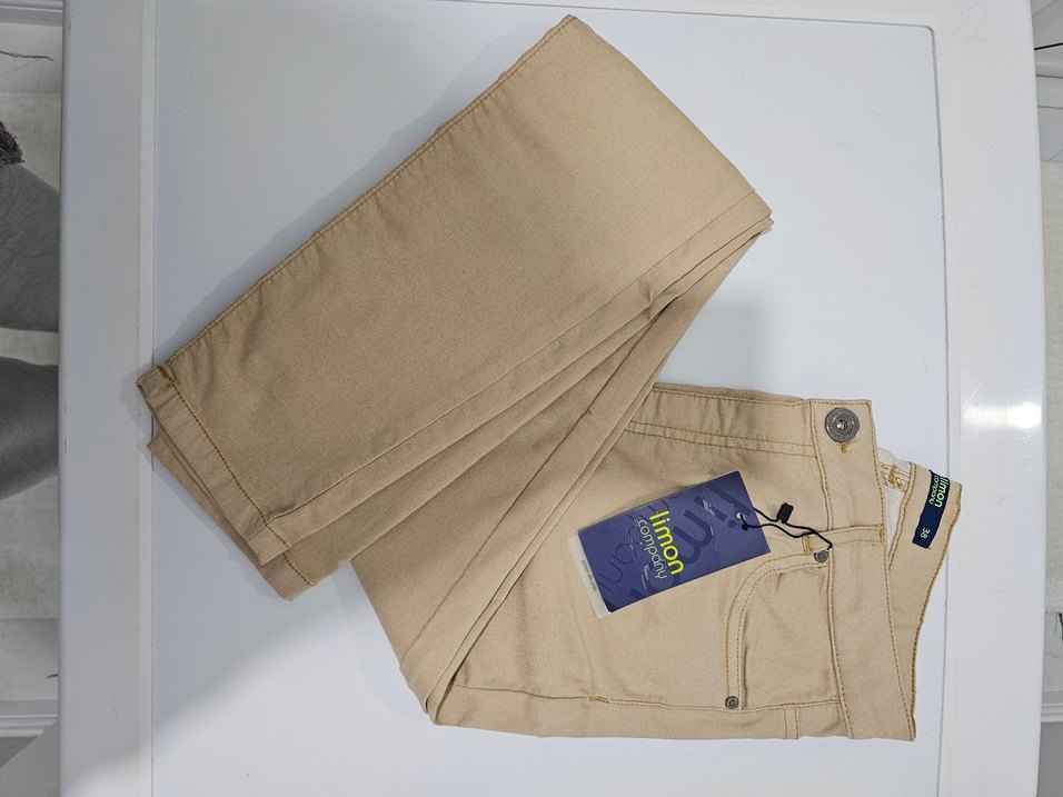 Limon Company marka sıfır etiketli. Bej renkli, düğmeli kapanışa sahip denim kadın pantolon. Regular fit kesim, günlük ve sokak stili için uygundur. 36 beden için uygundur.