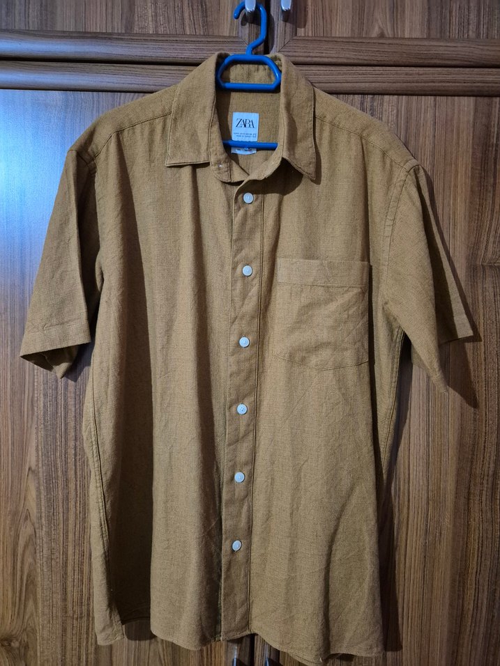Turuncu renkte, kısa kollu, düğmeli erkek gömlek. Günlük kullanıma uygundur.