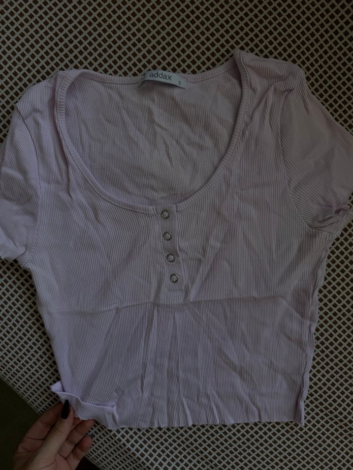 Crop Bej renkte, pamuklu, kısa kollu, düğmeli ve yuvarlak yakalı, günlük sokak stili için uygun kadın tişörtü.