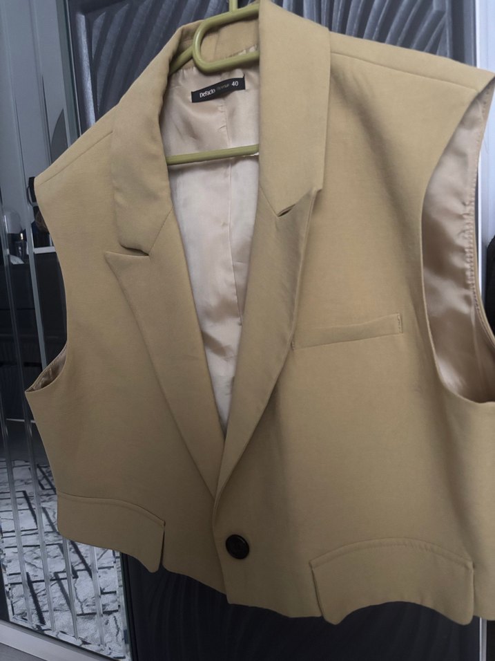 Bej Düğmeli Kolsuz Midi Blazer