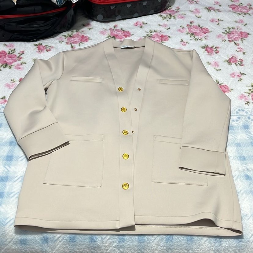 Bej Düğmeli Midi Kadın Ceket