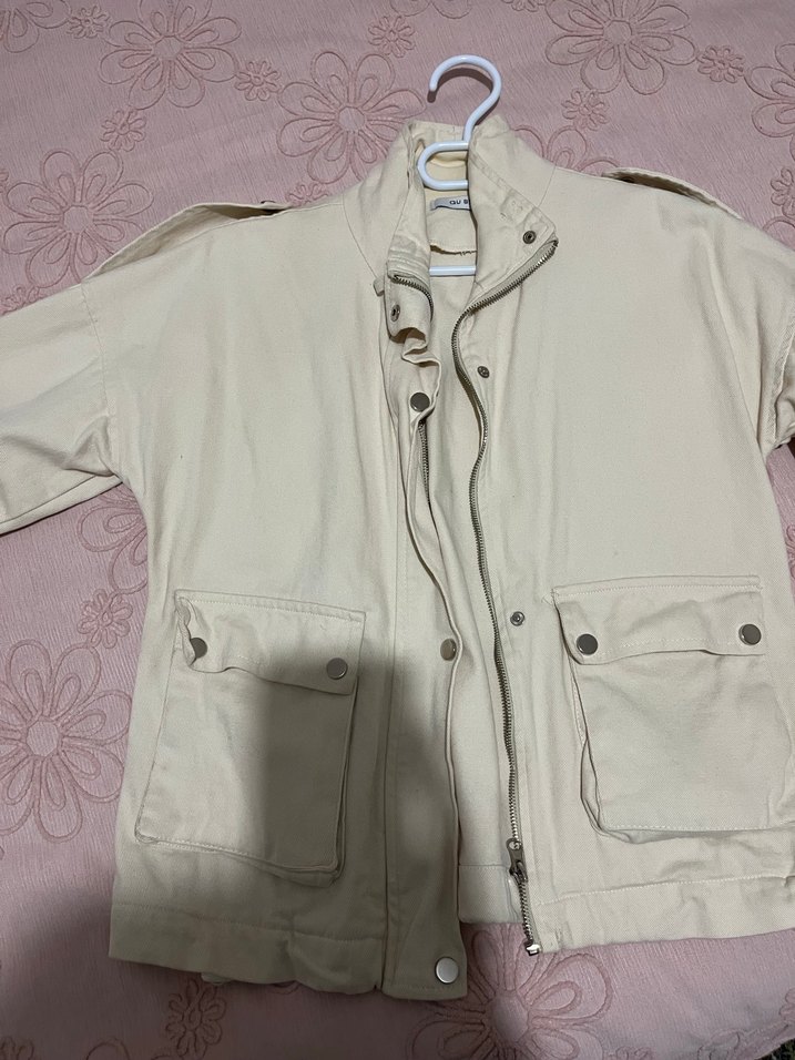 Bej renkli, pamuklu kumaştan yapılmış, düğmeli, yakalı ve uzun kollu rahat kesim midi kadın ceket. Sokak stiline uygun ceplidir.