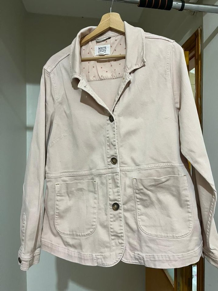 Bej renkli, pamuk kumaştan yapılmış, uzun kollu, düğmeli, çıtçıtlı midi uzunlukta kadın ceket. Rahat kesimi ve düz deseniyle günlük sokak stili için uygundur.