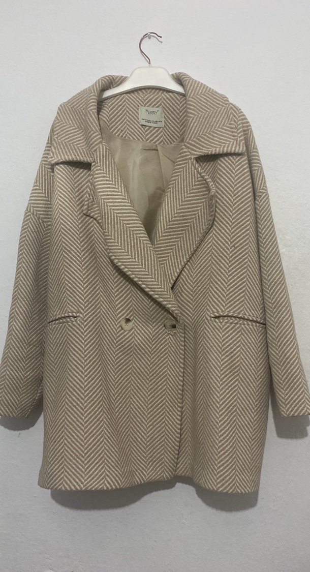Bej renkli, düğmeli, normal boy midi kadın kaban. Sentetik kumaştan yapılmış, regular fit ve uzun kolludur. Günlük sokak stiline uygundur.