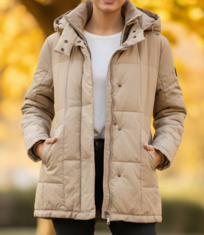 Bej renkli, düğmeli, midi uzunlukta kadın kışlık ceket. Uzun kollu, regular fit ve sentetik kumaştan üretilmiştir. Günlük kullanıma uygundur. ❄️