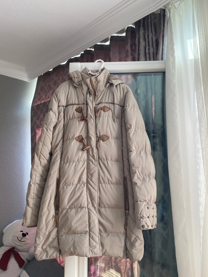 Bej Düğmeli Midi Kadın Kışlık Mont