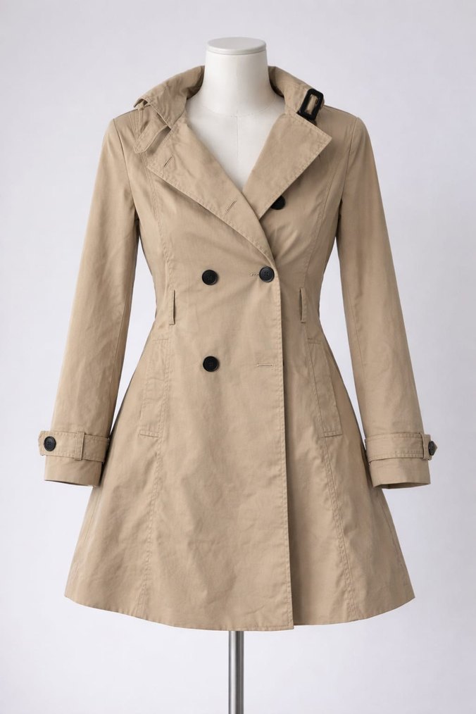 Bej Düğmeli Midi Kadın Trençkot