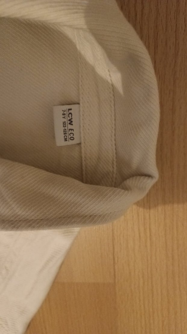 Bej renkli keten kumaştan, düğmeli, uzun kollu ve normal boyda . Notlu yaka ve bol kesimiyle minimalist normcore tarzını yansıtır. LSWECO etiketi bulunur.
