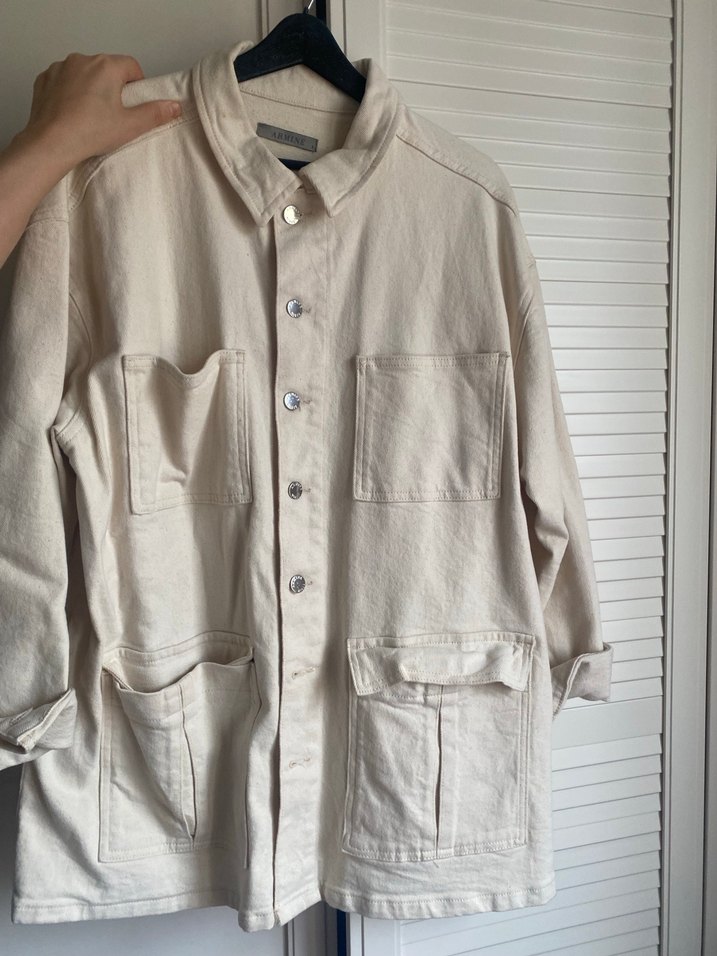 Bej renkli, keten kumaştan, düğmeli ve midi uzunlukta kadın ceketi. Salaş kesim, uzun kollu ve çentikli yaka detayı ile günlük rahat kullanıma uygun.