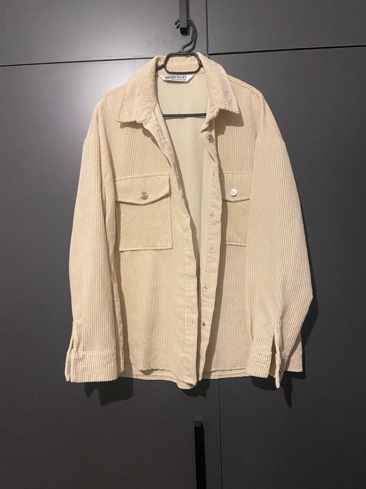 Bej renkli keten gömlek, uzun kollu ve düğmeli, cep detaylı. Rahat kesimiyle günlük kullanıma uygundur.
