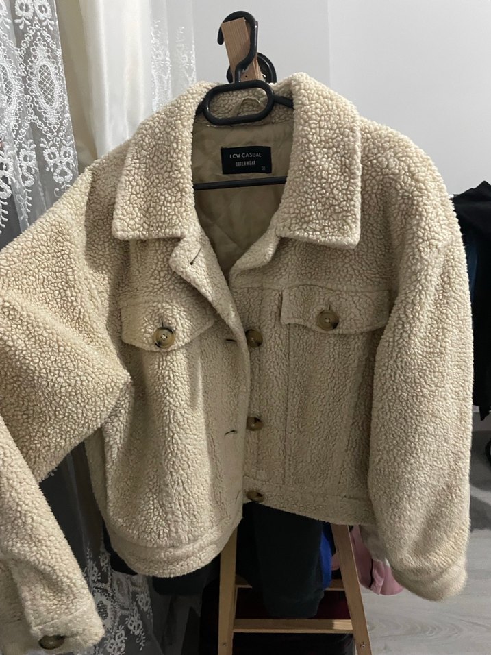 Bej renkte, düğmeli midi uzunlukta, yumuşak ve sıcak peluş kumaştan yapılmış, notlu yaka ve uzun kollu kadın ceketi. Rahat kesimiyle günlük sokak stili için uygundur. Az giyilmiştir dolabımı değiştirmek istediğim için satıyorum güzel ürün