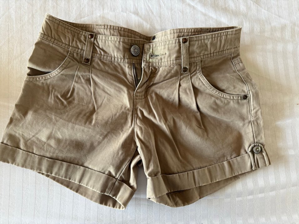 Bej renkli , düğmeli ve bol kesim mini şort. Günlük rahat kullanım için uygundur. Desensiz ve kısa boyda, trend görünüm sağlar. 9-10 yaş etiketli xs bedene uyumlu