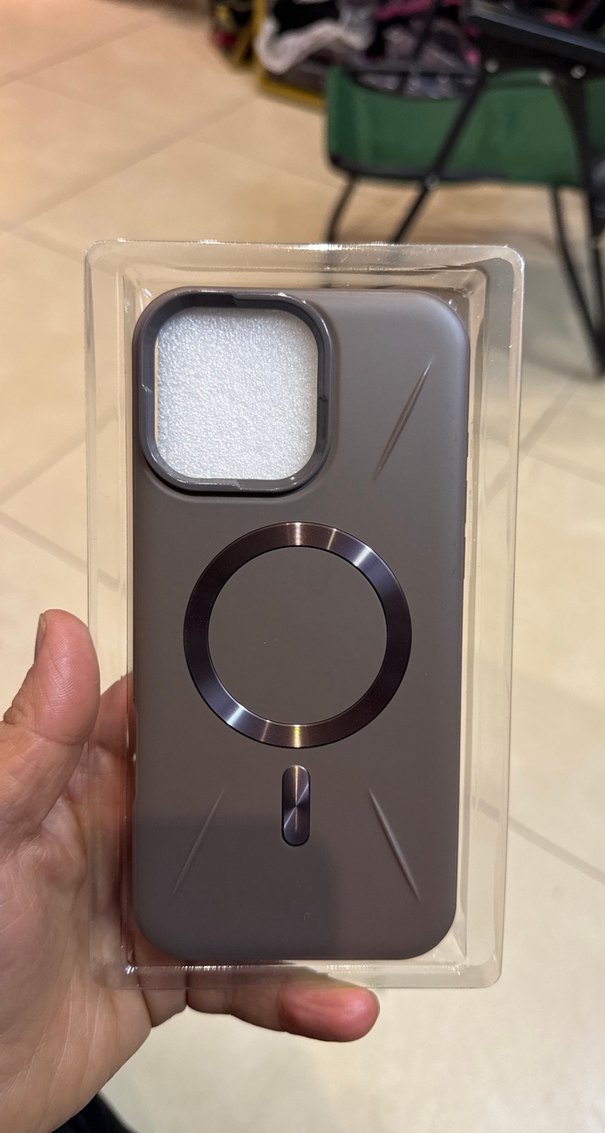 Bu çağdaş bej telefon kılıfı, düğmeli tasarıma ve güvenli tutuş için dairesel manyetik halka içerir. Cihazınızı koruyan şık bir yapıya sahiptir. 16 promax