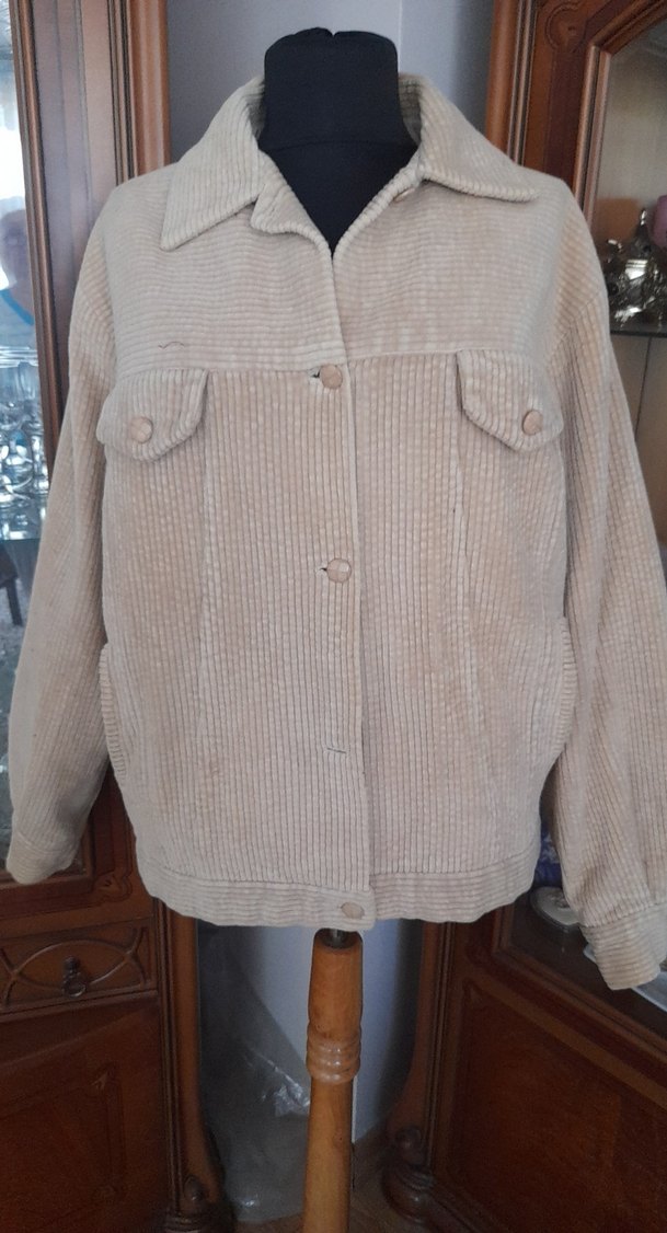 Bej renkli, düğmeli, notalı yakalı ve midi boyda mont ceketYumuşak, sıcak kumaştan, uzun kollu ve rahat bir sokak stili için uygun. Kumaşı fitili kadife olup özeldikimdir.36 38 40 bedene uygundur.
