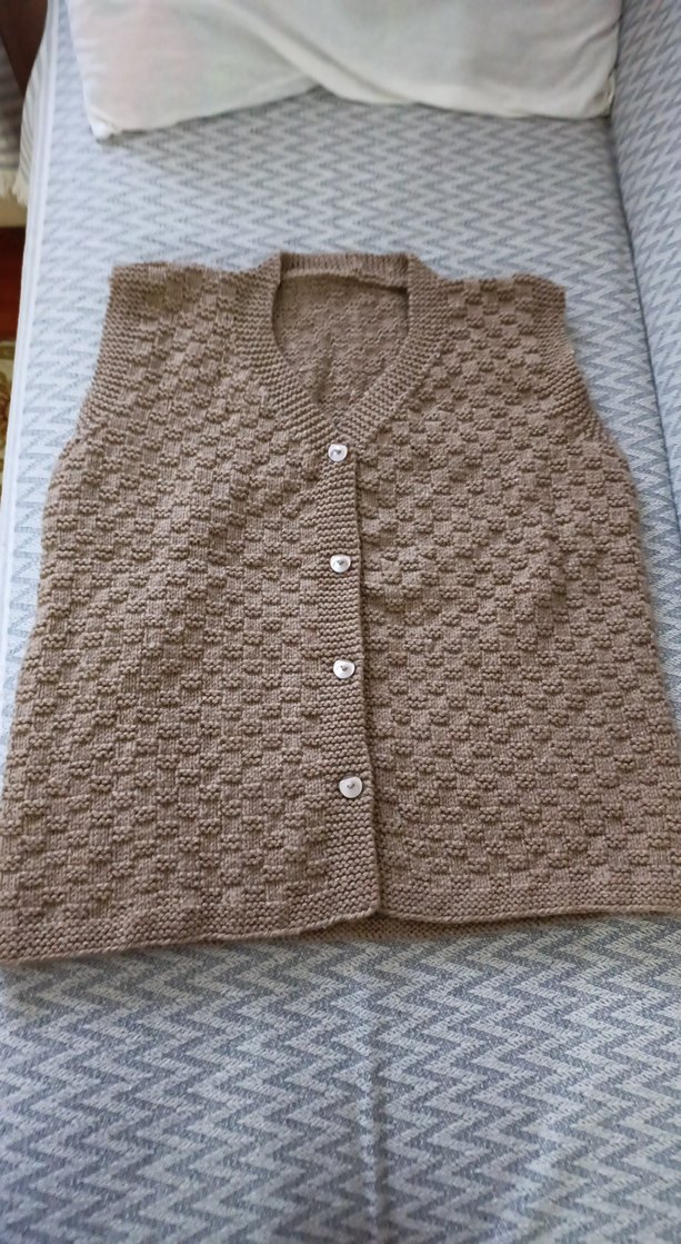 Bej renkli, düğmeli ve V yakalı örgü kadın yelek. Salaş kesim ve normal midi boyda, günlük kullanım için uygun. Kolsuz ve dokulu örgü deseniyle rahat bir his sağlar.