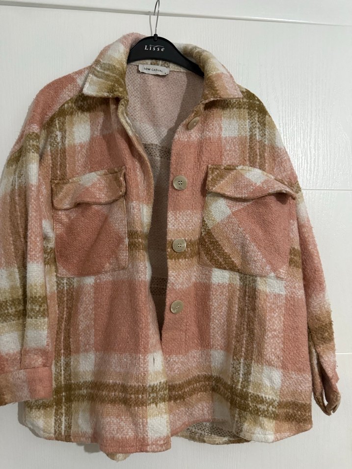 Düğmeli, uzun kollu, bej tonlarında pastel tie-dye desenli, oversize rahat kesim kadın gömlek. Günlük kullanıma uygun. Son fiyattır çok az giyildi