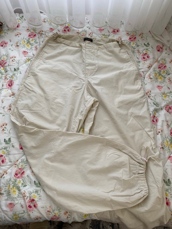 Bej Düğmeli parasut Pantolon