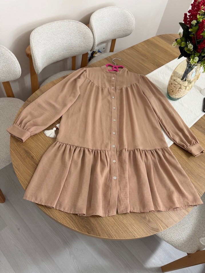 Bej Düğmeli Salaş Midi Tunik