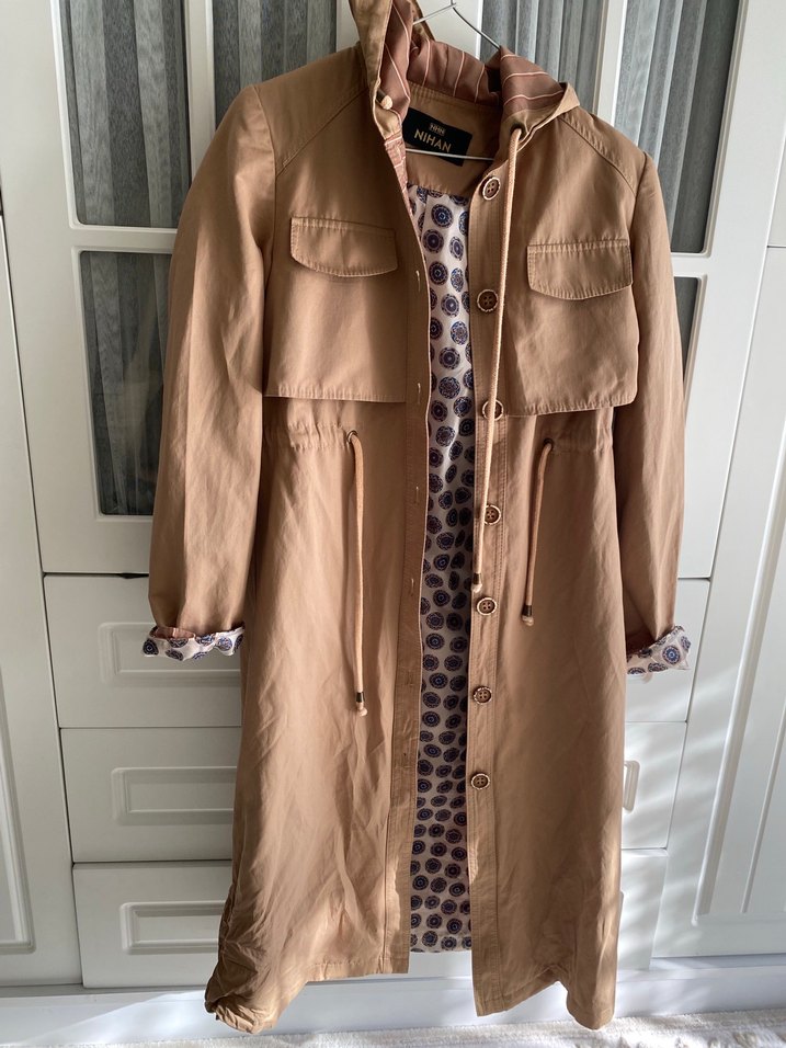 Satıldı///Bej Düğmeli Uzun Kadın Trençkot Nihan marka