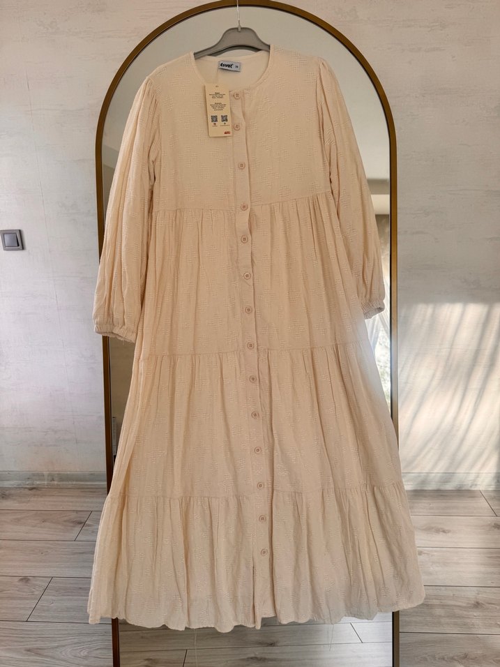 Bej renkte, uzun kollu ve düğmeli keten elbise. Salaş kesim ve tekne yaka detayıyla bohem tarzı sunar. Sağlık nedeniyle instagram butik sayfamı kapatıyorum elimde sınırlı sayıda elbise kaldı çok çok zararına sayfaya ekledim elimden çıkmaları için bu fiyatlara kaçırmayın. 36,38 ve 40 beden kaldı bedenler tam kalıptır kendi bedeninizi seçin