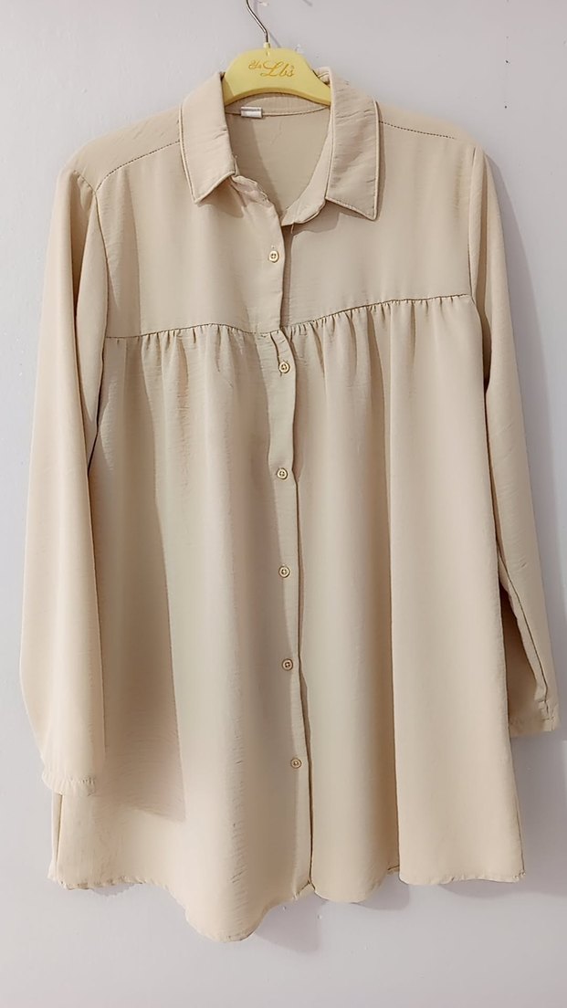 Bej Düğmeli Uzun Kollu airobin Gömlek