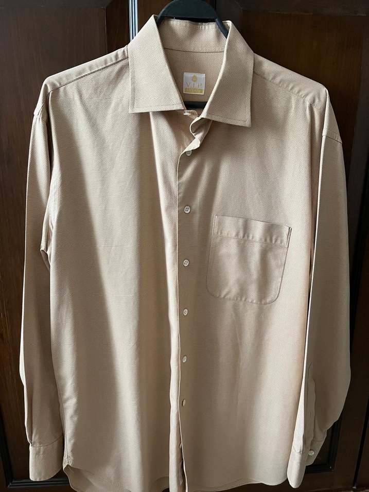 Bej Düğmeli Uzun Kollu Erkek Gömlek
