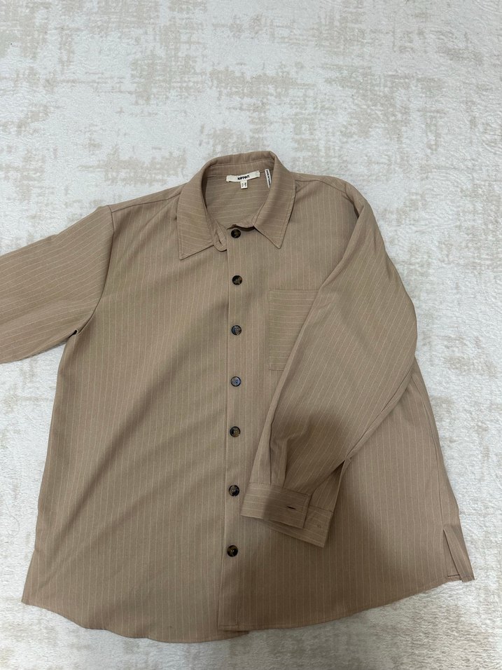 Bej Düğmeli Uzun Kollu Gömlek