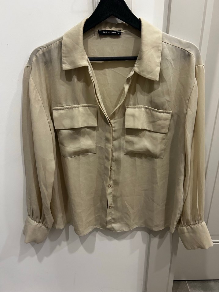 Bej Düğmeli Uzun Kollu Gömlek